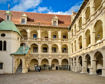 A train station with a train on the trackspeople walking down a sidewalk next to a fencea woman sitting on the floor in front of a windowA vibrant peacock stands proudly against greenery.A close-up of a beautiful peacock.grayscale photography of mannequins wearing shirtsa group of people standing in front of a windowa courtyard of a building with a clock tower