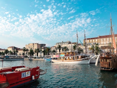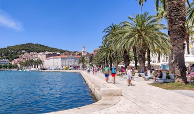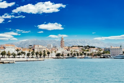 a person standing in front of a white building with a red roofred and white boat on water near buildings during daytimepeople walking on street during daytimeaerial photography of concrete buildingsa group of people walking along a waterfrontan aerial view of a city next to a body of wateraerial view of city near body of water during daytimea body of water with buildings and trees by it