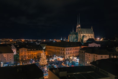 Gothic spires emerge from thick foga snowy landscape with trees and buildings in the distancewhite and brown concrete building during night timewhite dome buildinga city with many buildingsA black and white photo of a city streetCityscape view featuring buildings under a cloudy sky.brown concrete building with lighted outdoor fountain during night time