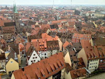 a group of people standing in front of a buildinga train traveling down train tracks next to tall buildingsa body of water with buildings along ita view of a city from a high point of viewbrown and white train on rail road near brown concrete building during daytimeA green field with houses on a hill in the backgrounda river running through a city next to tall buildingsa view of a city from a high point of view