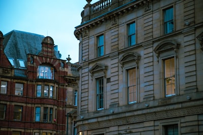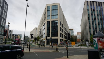 a building with a clock on the front of ita building with a clock on the front of itA red double decker bus driving down a streeta building with a sign that says play house on ita very tall building with a lot of lights on ita large building with a green and white sign in front of itan aerial view of a city with a clock towera street with cars and buildings on either side of it