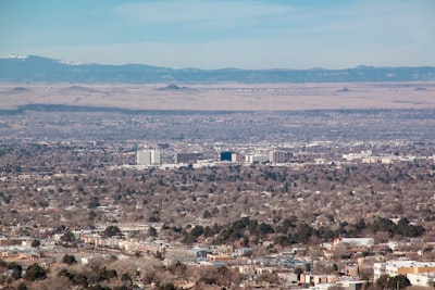 A view of a small town from a hillcity during nightcity skyline under blue sky during daytimea sign that reads albuqueroque with a waterfall in the backgroundred hot air balloon in the skyyellow and black hot air balloon in mid air during daytimeyellow red and blue hot air balloon under blue sky during daytimeorange and yellow hot air balloon in mid air during daytime